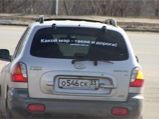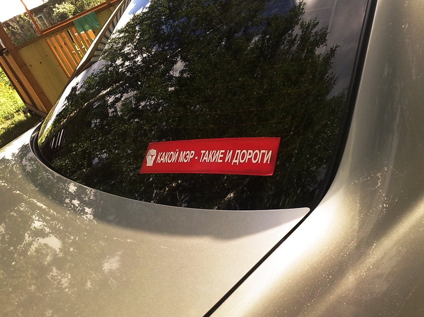 Наклейки на машинах в Новосибе "Какой мер-такие и дороги" я сам видел. на голубом фоне. 100% в цель!!!!
