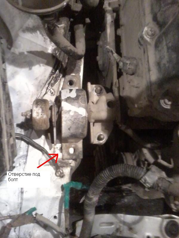 Сама балка(Точно не знаю как называеться) с изломом. Удар был в правую сторону и вся часть ушла вниз. пробовал греть, кувалдой подлазить, но всё как то без успешно, толком не подлезть из за двигателя. Стягивал, приваривал уголок. Но подушка не ровно встаёт всё равно. |