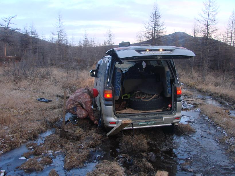 motk, ООО!Год назад я на Эскудо ровно в этом месте сидел и забыл там ТОПОР и ЛОПАТУ(((Надо было ехать по бревнам, там нормально, а сюда я сунулся по вездеходным следам и сел.Выехать самому наверное там практически не возможно т.к. там все шевелистя и копать и рубить не возможно, просто корни трав-МУРАВ.