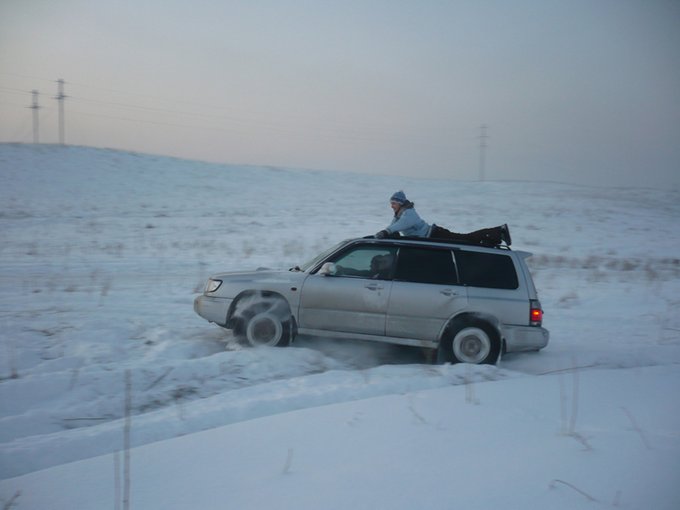 1. Треснуло лобовое стекло в зоне обогрева. Ни с того ни с сего… то есть вышел завел, прогрел, поехал и через три минуты треснуло стекло. Понабравшись инфы, выяснил, что это довольно частая болезнь у старых Форестеров, мол если прогревать без печки а уже на ходу включить направив на стекло то оно может треснуть. Сама по себе трещина обзору совершенно не мешает, её даже видно тока внимательно приглядевшись, но гаишники постоянно теребят на предмет нарушения правил о техническом состоянии автотранспортного средства.