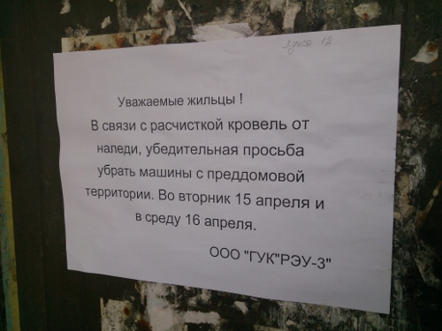 Нажмите для просмотра прикрепленного файла По моему календарю вчера был понедельник 14 апреля, у них видимо свой календарь. Потом началась очистка крыш, результат