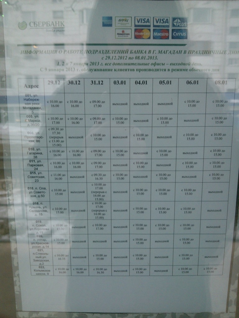 MIB, сбербанк должен работать по субботнему расписанию
