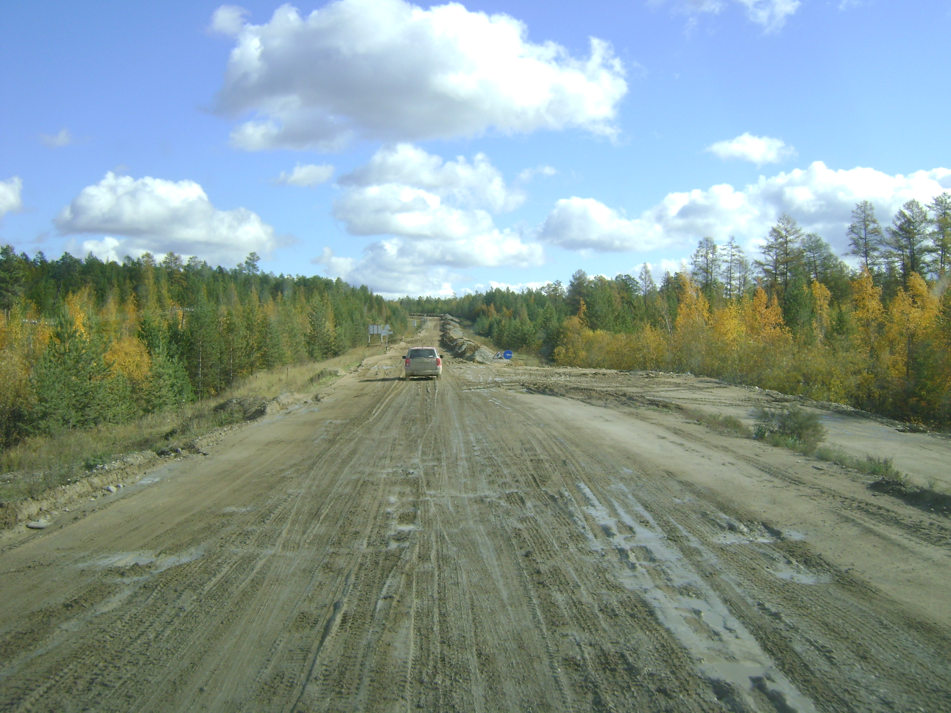 _Forward_, Это не мои фото , Я и написал что примерно такая дорога.А от бестяха в нашу сторону еще и в одну колею , и чтоб разехаться со встречкой лезиш на кучи которыми дорогу отсыпают.Перед Бестяхом со стороны тынды понавозили этого говна начинают его утаптывать и получается такая хрень но там хоть дорога щирокая. Такии участки сопровождали Меня очень часто. Под Тындой на глазах самосвал просто провалился посреди дороги и все встали. А таким знакам мы часто удивлялись. Зато где можно было поехать нормально, 50 40 ставят