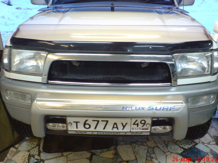 Вот вопрос такой, У тебя Сурф дорестайлинговый, а крепления радиаторной решетки такие же как у после рестайлинговой модели? Тоже хочу замутить подобную фиговину, только в место сетки сделать алюминиевую решетку. Моя же решетка не позволяет так сделать, так как среднее ребро не удастся ровно обрезать не повредив при этом хромированное покрытие.