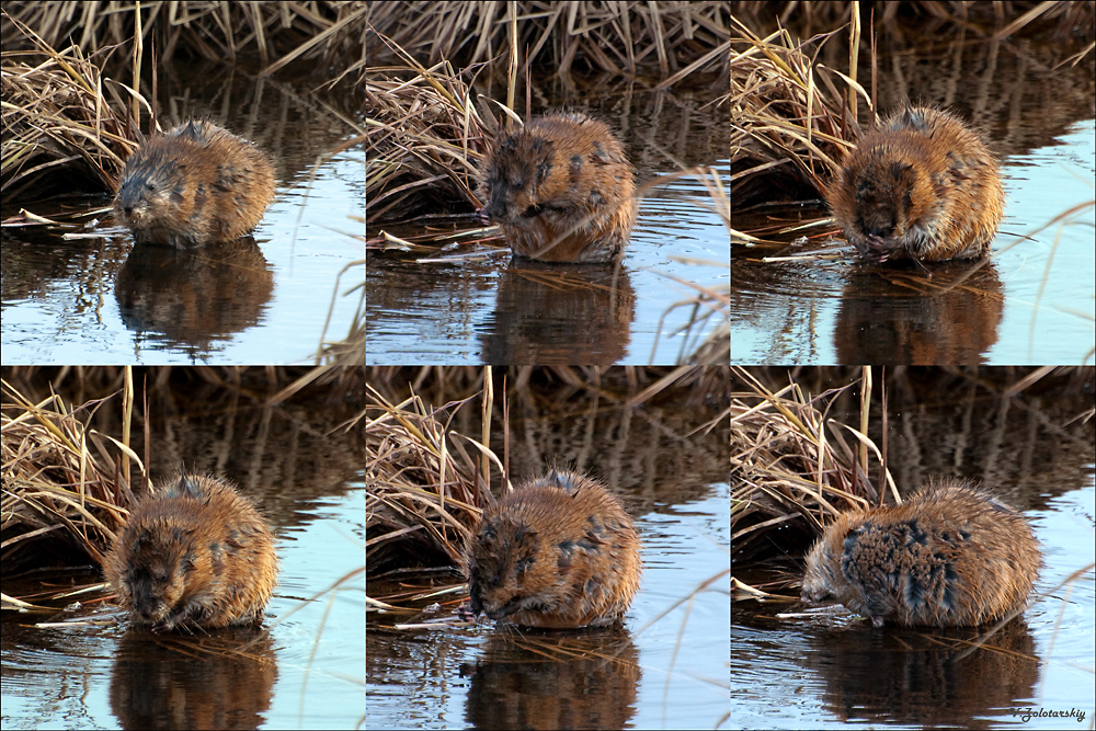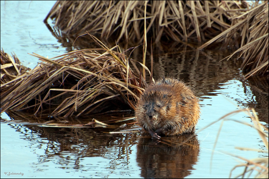 Нажмите для просмотра прикрепленного файла Нажмите для просмотра прикрепленного файлаХвоста тут не видно, но он такой, как ты и говоришь... На "сухую" он пушистый, но на практике, учитывая, что она большую часть времени в воде проводит - он в основном и выглядит как у крысы... Кстати, её и называют ещё - водяной крысой...