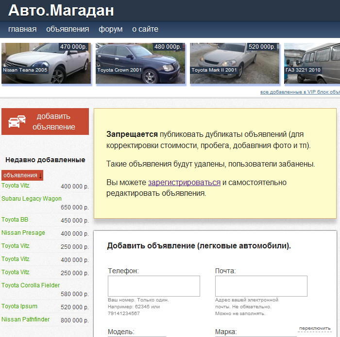 догадывается зарегистрироваться и опубликовать новое объявление под своим логином.
