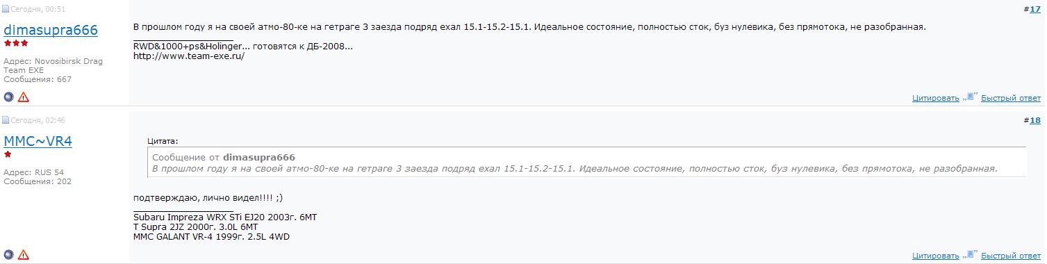 http://am49.ru/talk/index.php?show...ost&p=14095Хе. Ну начнем с начала. Я написал что мы топались и как, что типа кинуло на встрчк. Ты написал что мол был свидетелем как была авария мол мозги включайте.Я написал что мол когда МЫ топались мозги надо было включать ему, и на повороте он был один.... А ты пишешь что ты был на гонке той, меня не видел =) Ну так епт, все тебе верят что ты был на той гонке, и меня