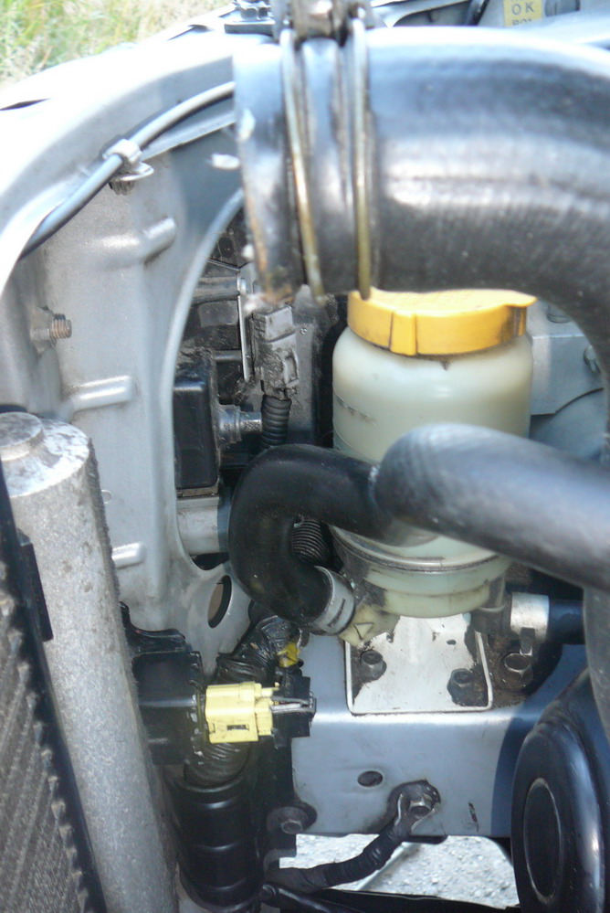 Начал снимать радиатор, все просто, видим болт — откручиваем, шланги и фишки тоже отсоединяем, снял сначала вентиляторы, потом шланги ATF, потом сам радиатор