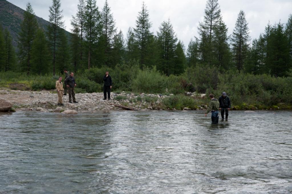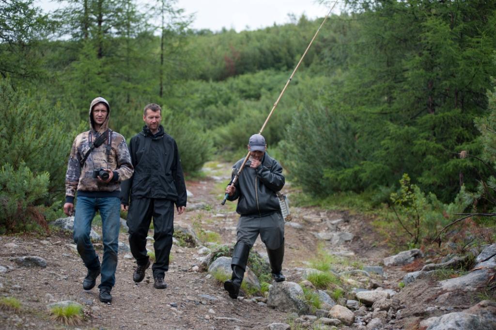 Обратная дорога уже немного знакома, идем спокойно, УАЗ пару раз садится, тягаем его при необходимости уже моей машинкой и потихоньку подъезжаем к 21-у киллометру. По пути встречали рыбаков ловящих в речках хариуса.