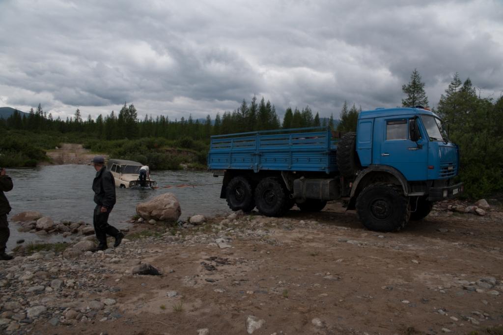 Разговорились с Александром. Рассказал что машина ходит обычно в пятницу из Ягодного, в суботу с озера. В лагерь детский продукты завозит и туристов вывозит. 2 дня назад машина ушла, вывезла с озера двух мототуристов из Якутска и Ленска. До озера они сами добрались, ну а выбраться у них сил уже не хватило, погрузили их в Камаз и вывезли с озера. И сегодня УАЗ и Буханка ушли утром (которых мы по дороге встретили).