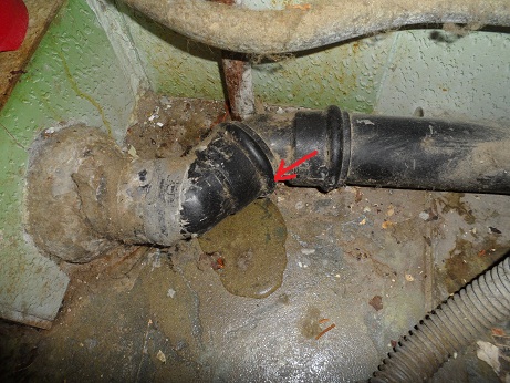 Или течёт из сопряжения чугуна и пластика. Тут лучше всего, всё разобрать, купить резиновый переходник с чугуна на пластик, новую пластиковую трубу и собрать всё обратно с герметиком.