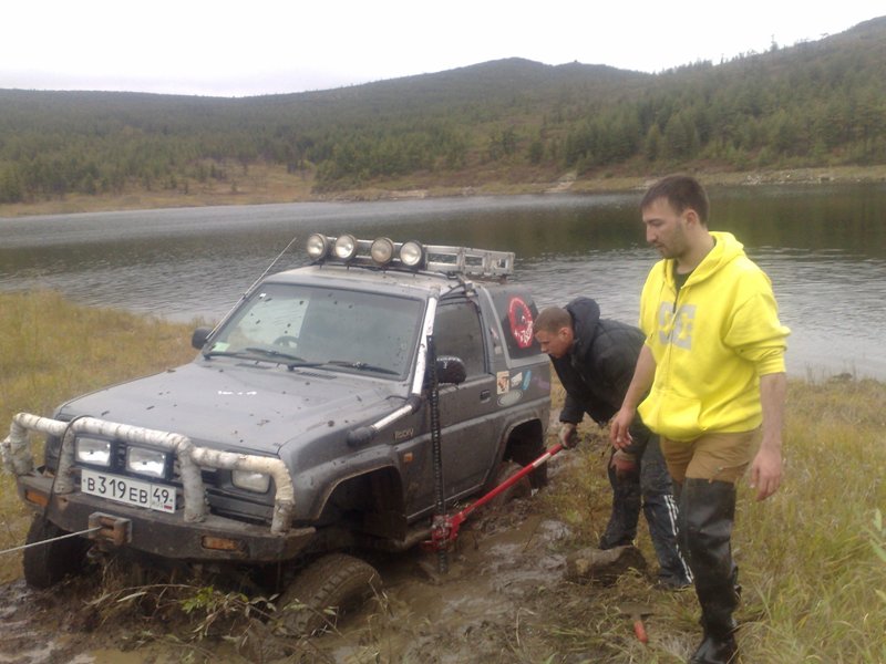 офигенно прокатились, заблудились, застряли, что чуть лебедку не спалили))))) Хайджек на метр с лишним заглубили, но выбрались!!!!