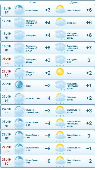 Со среды, дней на 5-6 прогноз погоды обещает снего-дождь при околонулевой температуре.