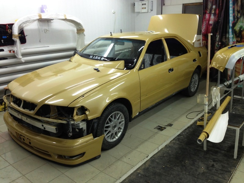Сначала кузов помытого автомобиля очищается от остатков грязи, битума, смол, перепыла под лаком и прочих технических загрязнений специальными химическими средствами, а также абразивной глиной. В случаях с качественным лакокрасочным покрытием можно приступать к следующему этапу, но если старый лак шелушится и имеет тенденцию к отслоению, мы зачищаем его влажным методом абразивными листами с мелким зерном (матируем поверхность).
