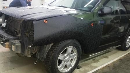 Далее следует этап арматурных работ. С автомобиля необходимо снять все навесные элементы, такие как дверные и оконные молдинги, эмблемы и зачистить их и поверхность под ними от двустороннего скотча не повредив при этом лакокрасочный слой. Обшивку салона, ручки дверей, рейлинги, зеркала, передние крылья, решетку, бампера, пороги, спойлер и оптику автомобиля также требуется аккуратно демонтировать, устроив ревизию крепежным элементам.