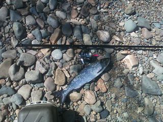 Сегодня вечером на р.Ола, но на обычной оснастке, одного кижуча 3,5кг, отстоял шесть часов, но всё-таки клюнул.
