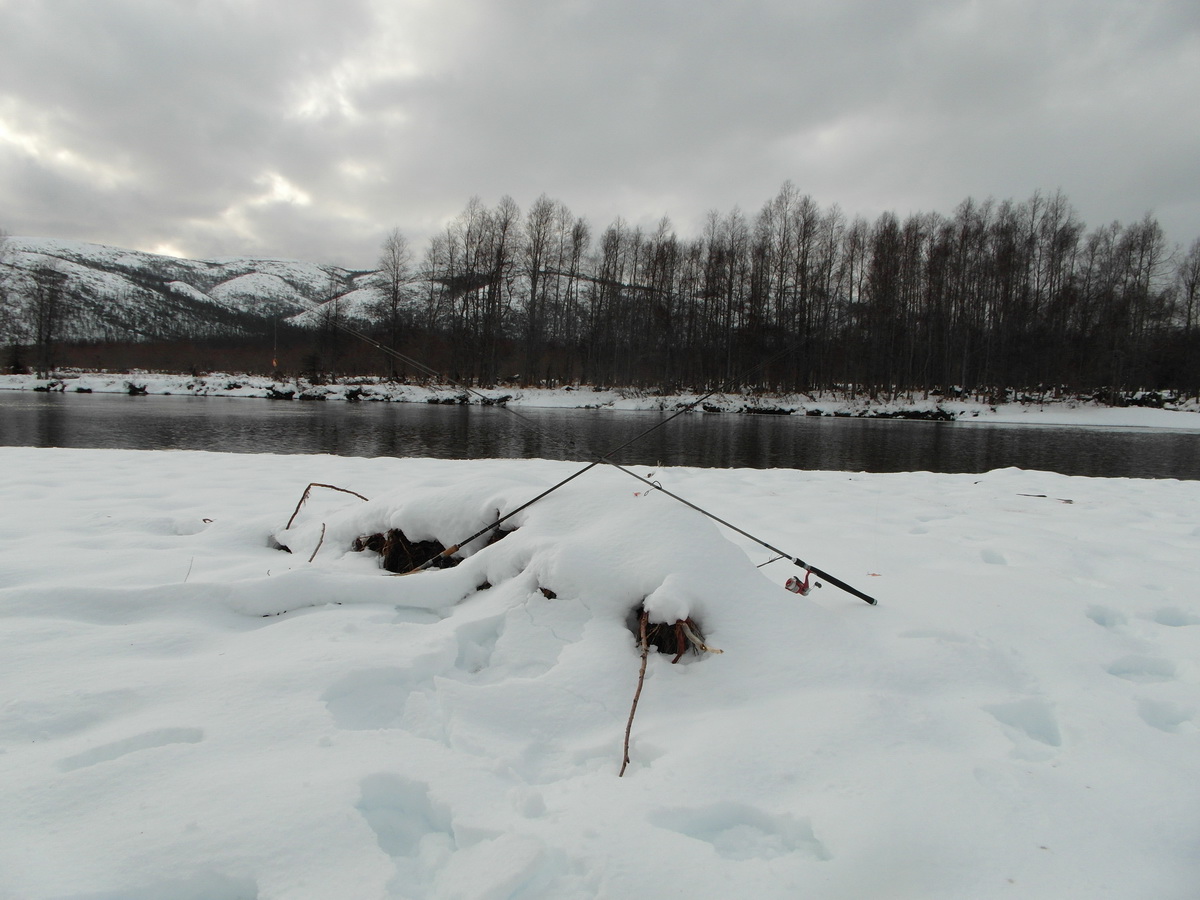 Сегодня решили с товарищем, поискать рыбацкого счастья, на " Японском". Приехали в 12 дня, снег идёт, ветер и рыбка не клюёт. Пробросали близлежащие плёсы, результат 0! В 14-30 поехали на слияние Хасына и Уптара, результат тот же! В 17-30 поехали домой, несолоно хлебавши!