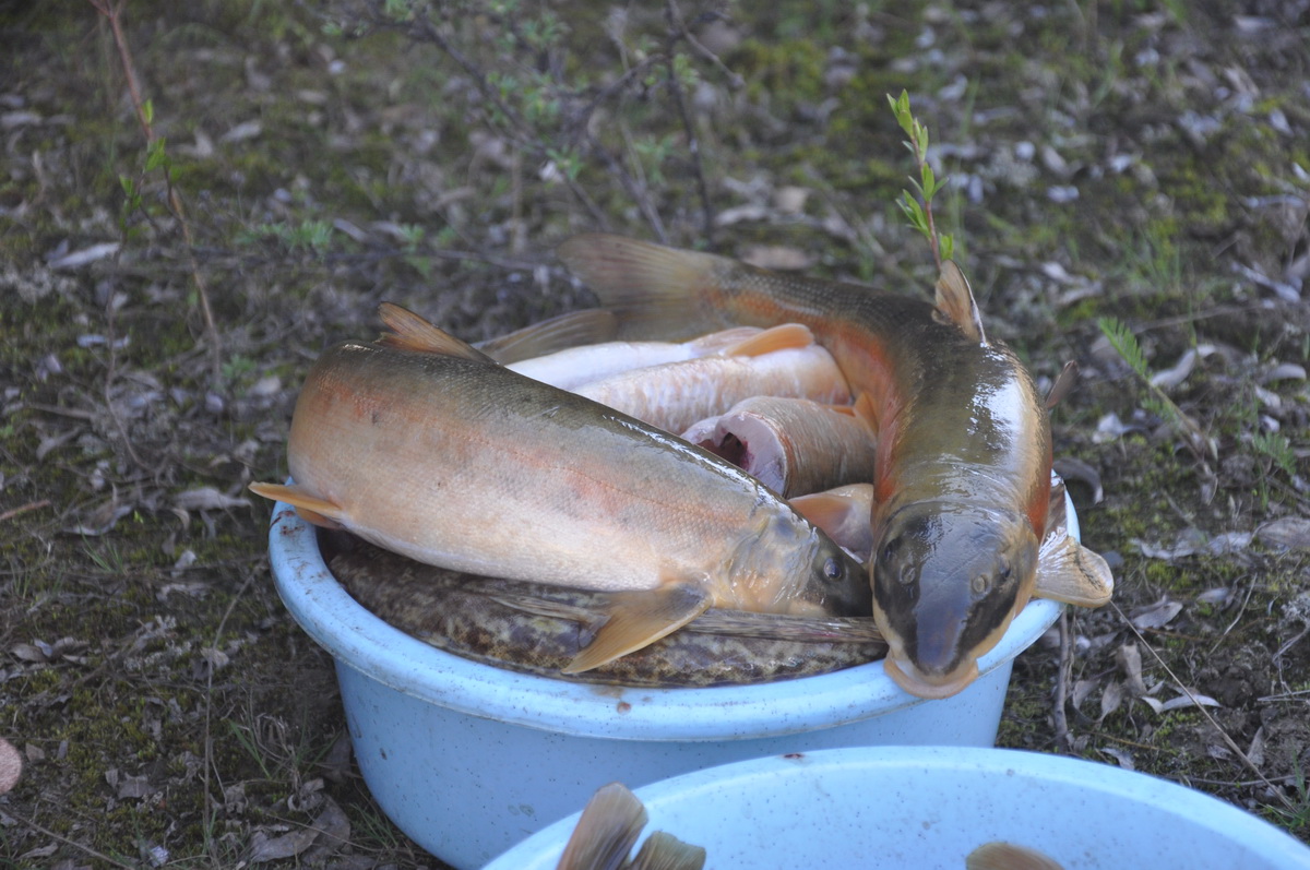 На одной из ям задержались на три дня, хариус пёр, в основном с икрой (пару ванн поймали)