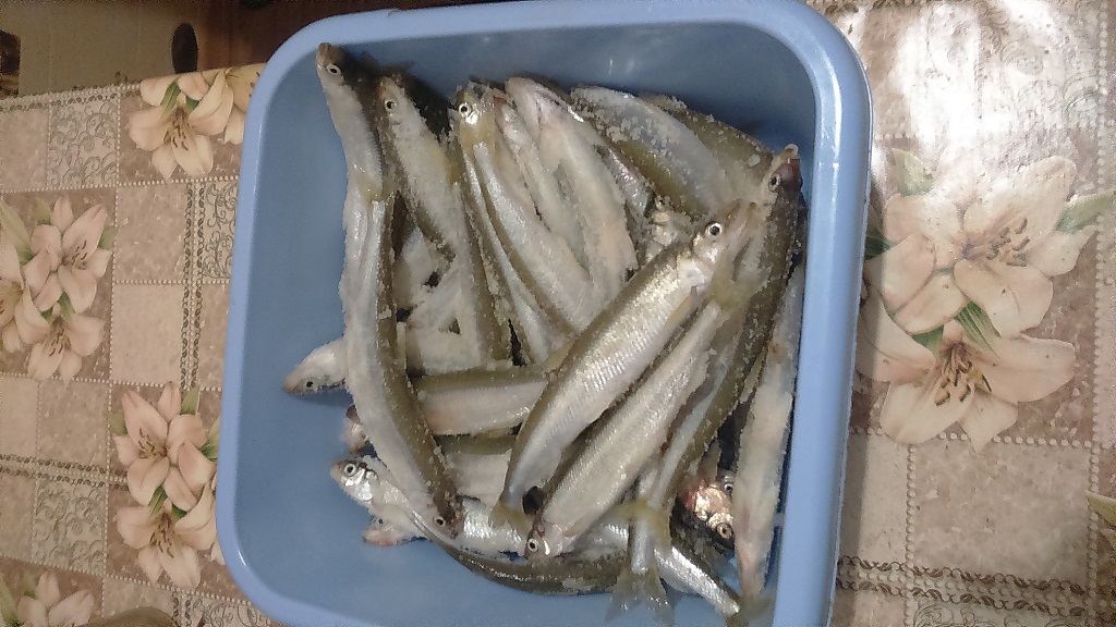 только одну корюшку . Но какой от нее запах!!!!