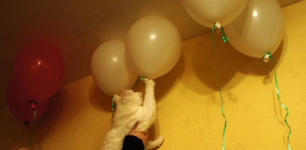 А между прочим огромная польза от этого конкурса - кошка сейчас занята игрой с веревочками, которые свисают с шариков, надутых гелием))))))))