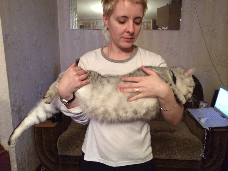 Это кот размером с питбуля или питбуль размером с кота?