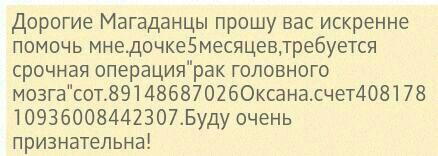 Просим откликнуться кто может оказать помощь. Расчетный счёт в Сбербанке России 40817810936008442307 на имя Киреевой Оксаны Станиславовны (мама)