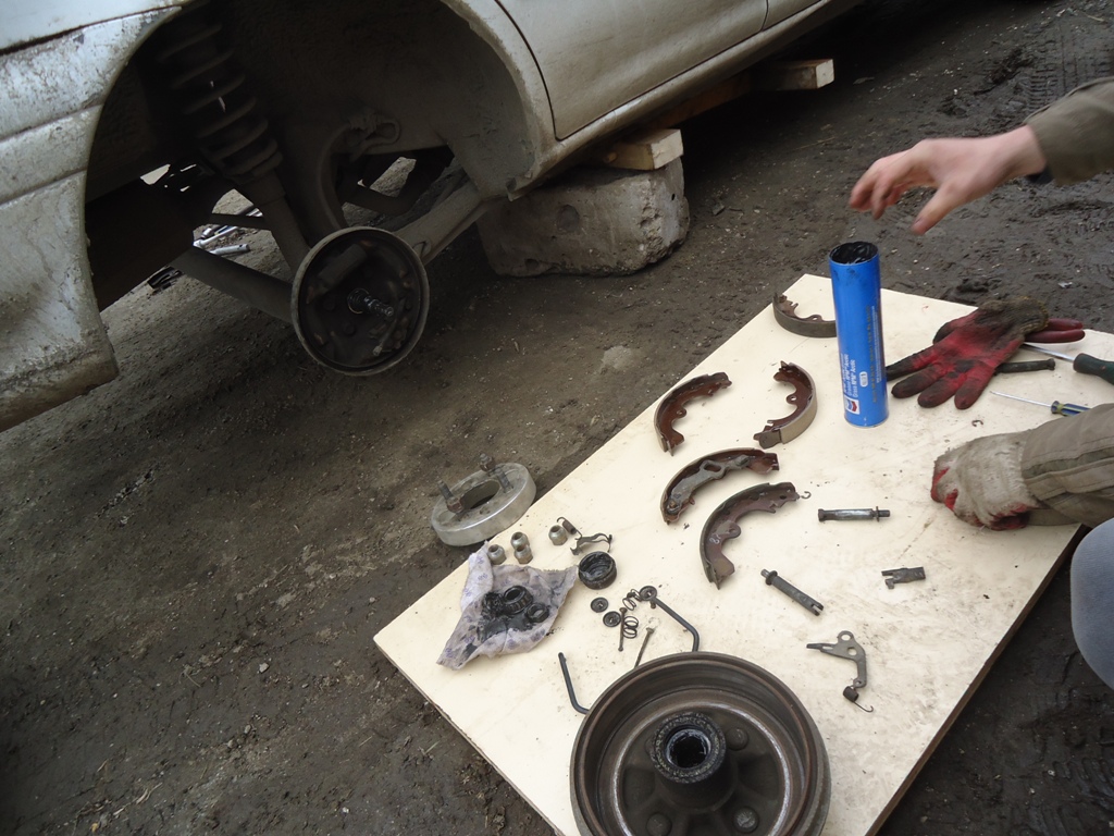 Ну, в ходе разбора барабанов снова выяснилось, что там лазили рукопопы. Я даже не особо удивился=)) Во, первых, самое, что нелепое - в правом барабане оказалось аж 2 штока, которые стоят между колодками, устанавливая их на необходимом расстоянии друг от другу. Один там по конструкции есть. А второй, как запаска, там в барабане и болтался до кучи. Жуть)) Плюс в одном барабане сломано ухо хреновины, которой манипулирует пружина при натяжении ручника. Не помню, на какую сторону мы поставили целую, но факт в том, что только в одном барабане она работает. Но ручник есть, держит. Не могу сказать про крутые уклоны, но небольшие держит нормально даже одной стороной. Плюс еще одна металлюка была с одного краю завернута в бараний рог, но технически это оказалось не критичным. Старые колодки, естественно, были с вырабаткой. причём весьма неравномерной. Их я поленился сфотать, извиняюсь. Барабаны тоже оказались с выработкой. На левом ещё-более менее, а правый нехило выработан, фото прилагаю ниже. Плюс еще выяснилось, что у меня стоят проставки по кругу. Мм 30, и вероятно, просто для вида, чтоб колеса из арок чуть выходили. Али практично решили изменить ширину колеи, кто знает.