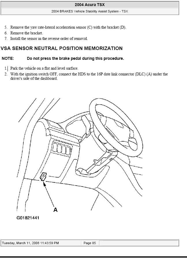 HONDA VSA Neutral Position Memorization Procedure: