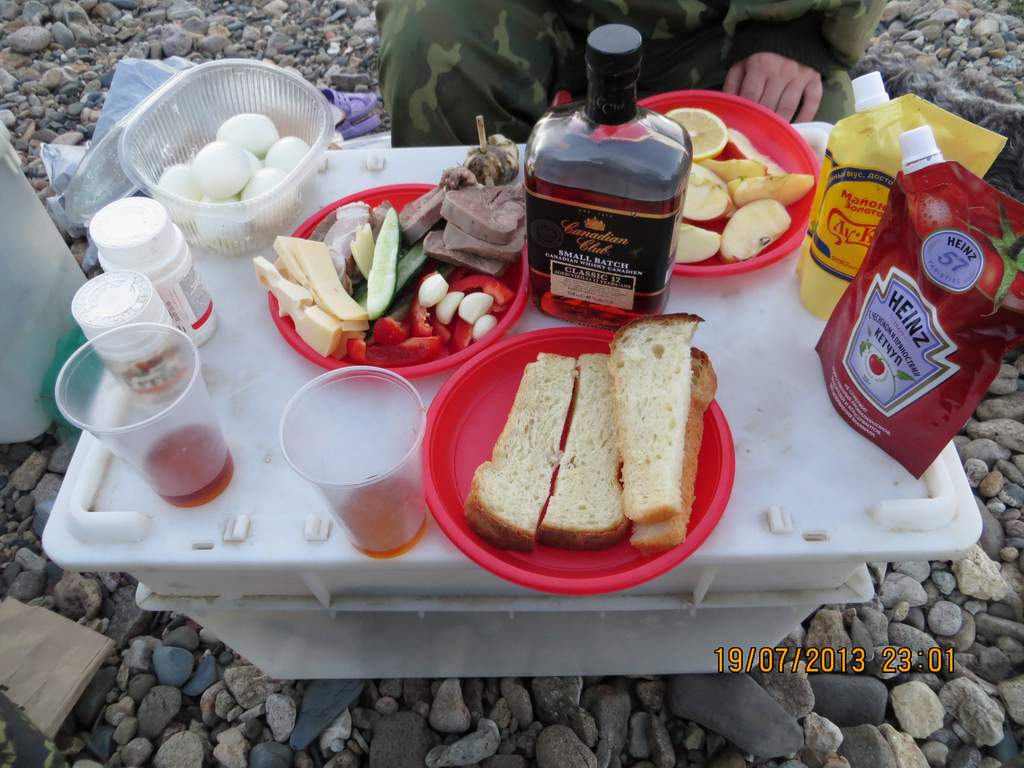 Нажмите для просмотра прикрепленного файлаПод Байкальском попали под какой-то марш-бросок вояк. Из поворота у нас под носом вынырнула машина ДПС, блокировав проезд по федералке, и пропустив колонну Уралов с зачехленными ДШК, наливами, БТР и просто фургонами с невыспавшимися солдатиками – срочниками, повела эту процессию в сторону Слюдянки. Поначалу, мы как законопослушные, тошнили за ними 50км/ч, потом посмотрев на маневры местных, догонявших нас и обгонявших вояк, тоже начали протискиваться по узким серпантинам между Уралами и БТР. Плюнули на маневры, только увидев придорожную кафе. Остановились на завтрак. Увидев в меню жаренного омуля, заказали. Сделан он был божественно – явно свежий, нежная хрустящая корочка и сочное белое мясо. Но всё испортила зачем-то добавленная томатная заливка советско-столовского образца. Завтрак обошелся недорого.