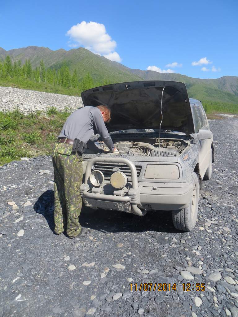 Посмотрели машинку, новых замечаний к ней при первом осмотре не обнаружилось (исключая забастовавший с Якутии кондиционер, правда, особой нужды в нем мы не испытывали – ехали с открытыми окнами), требовалось поменять масла и найти причину шумов ходовки. Покрутив тут же машинку, поставили диагноз – задний редуктор в агональном состоянии, требуется срочная замена. Пока крутили его туда-сюда (штука дефицитная и недешевая, вдруг ошибочка закралась), он заклинил окончательно
