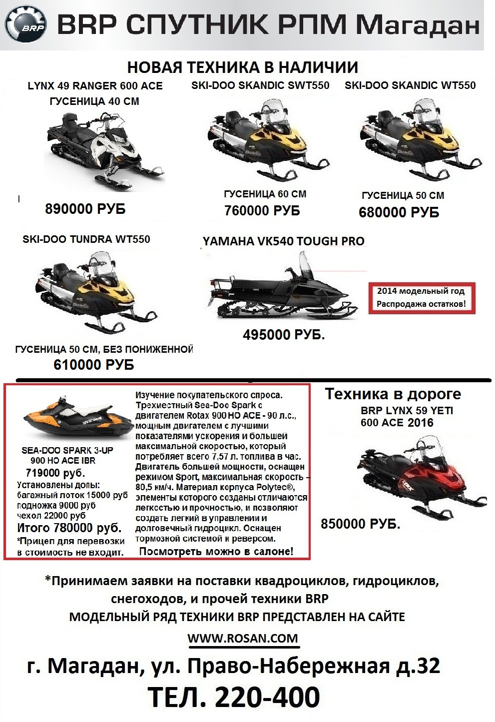 о начале продаж техники BRP в Магадане официально!