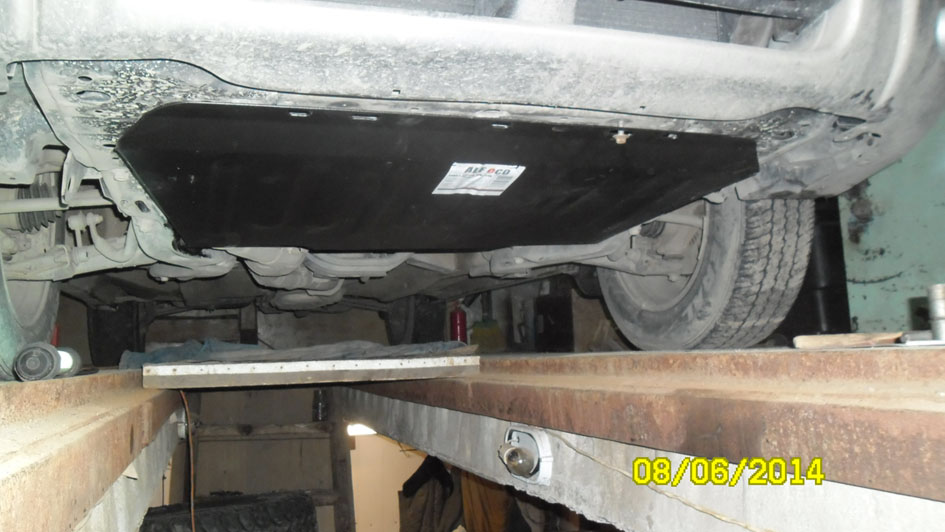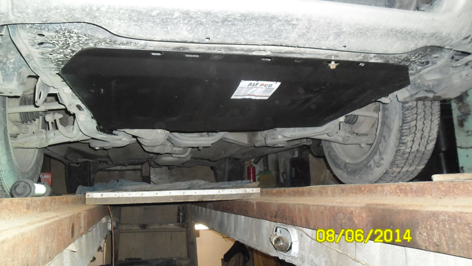 Например: стальная защита на авто Nissan Avenir W11 обойдётся в 1700 р. Спереди крепится на буксировочные проушины, сзади - на поперечные рычаги. А вот на Suzuki Grand Vitara аж три щита (в сумме 3200 получается, сталь).