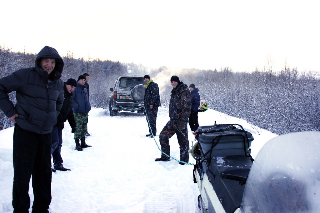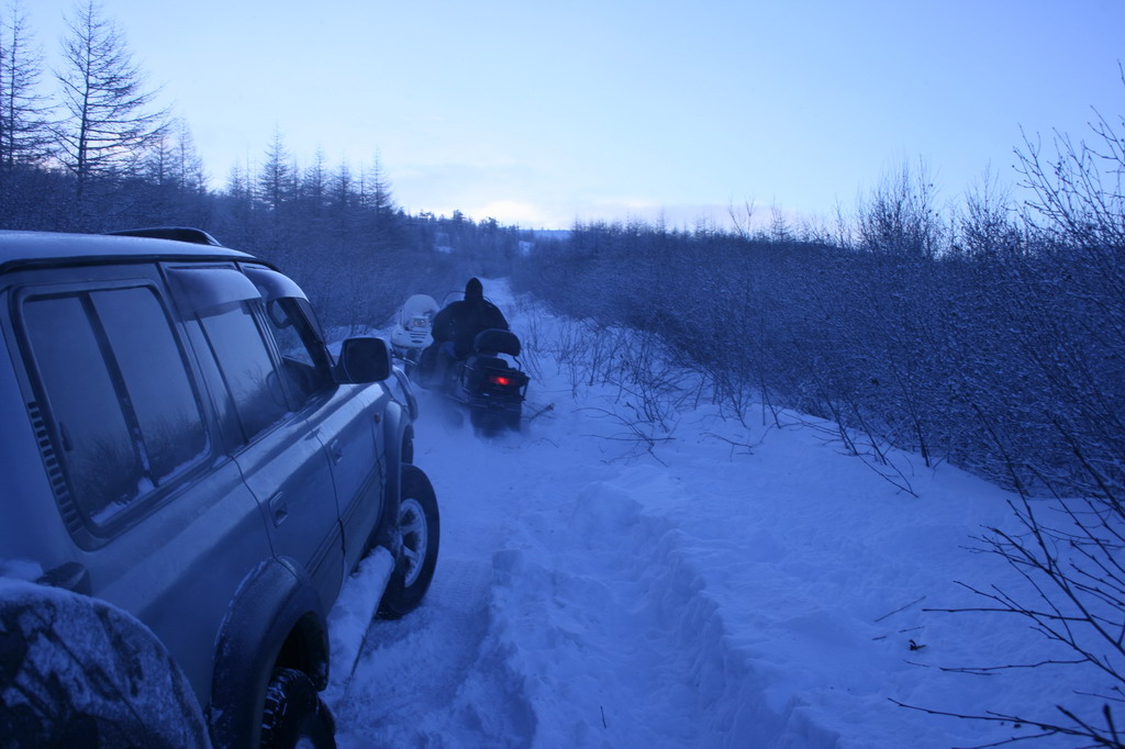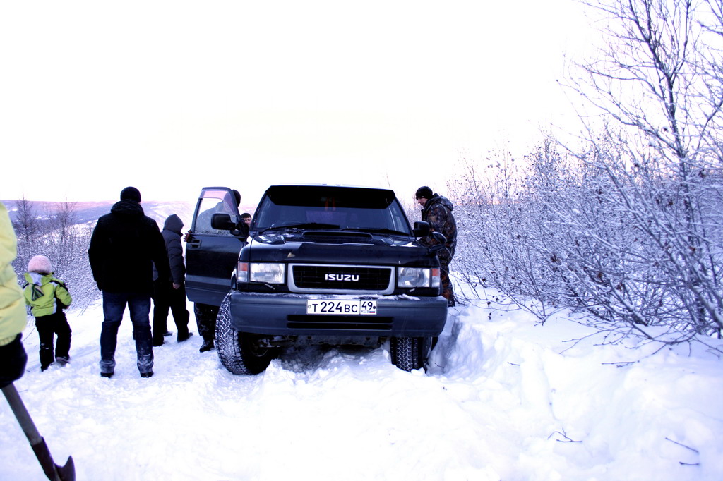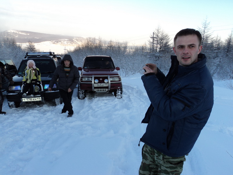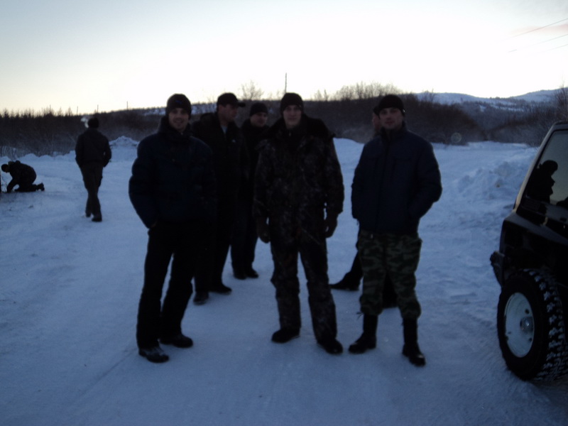 он был впереди и немного нам мешал когда застрял пока вытащили уже смеркалось