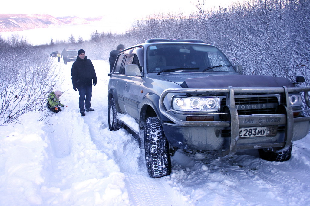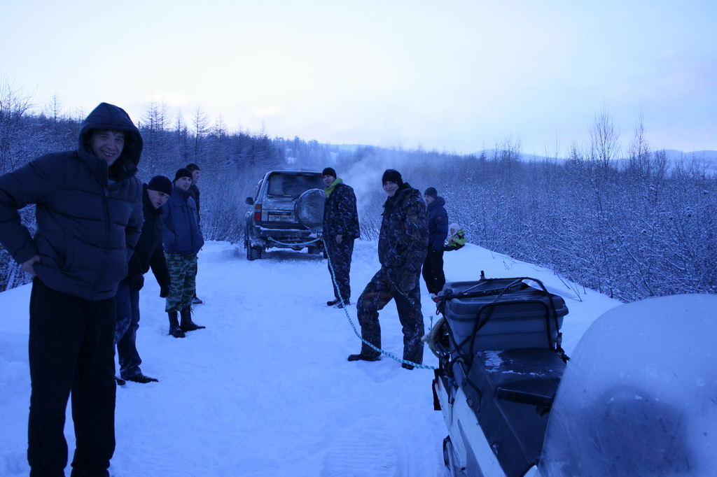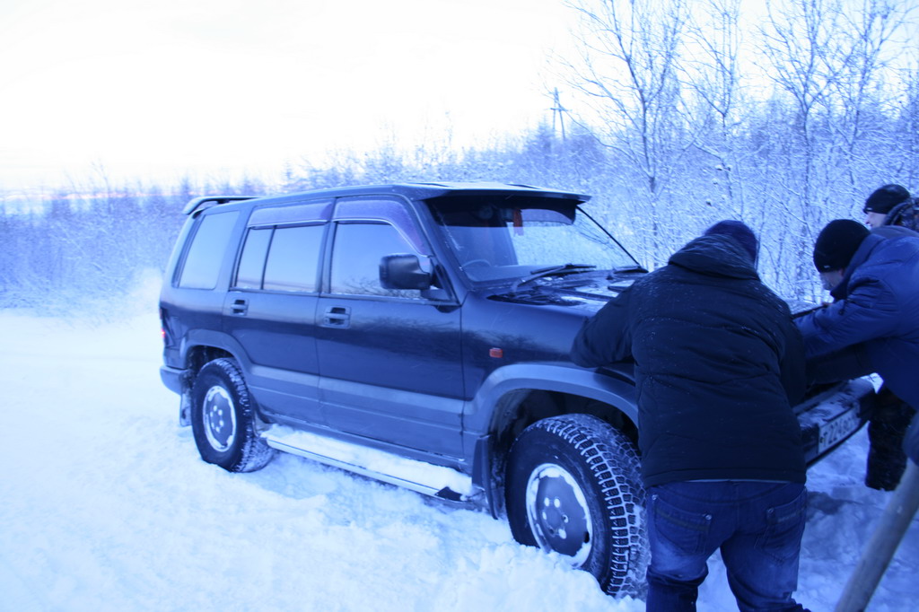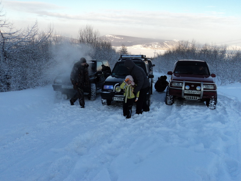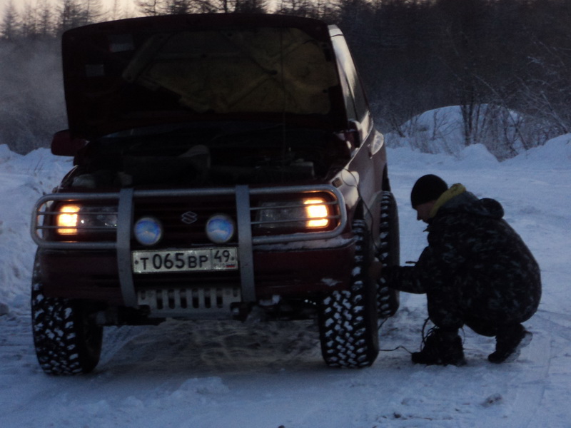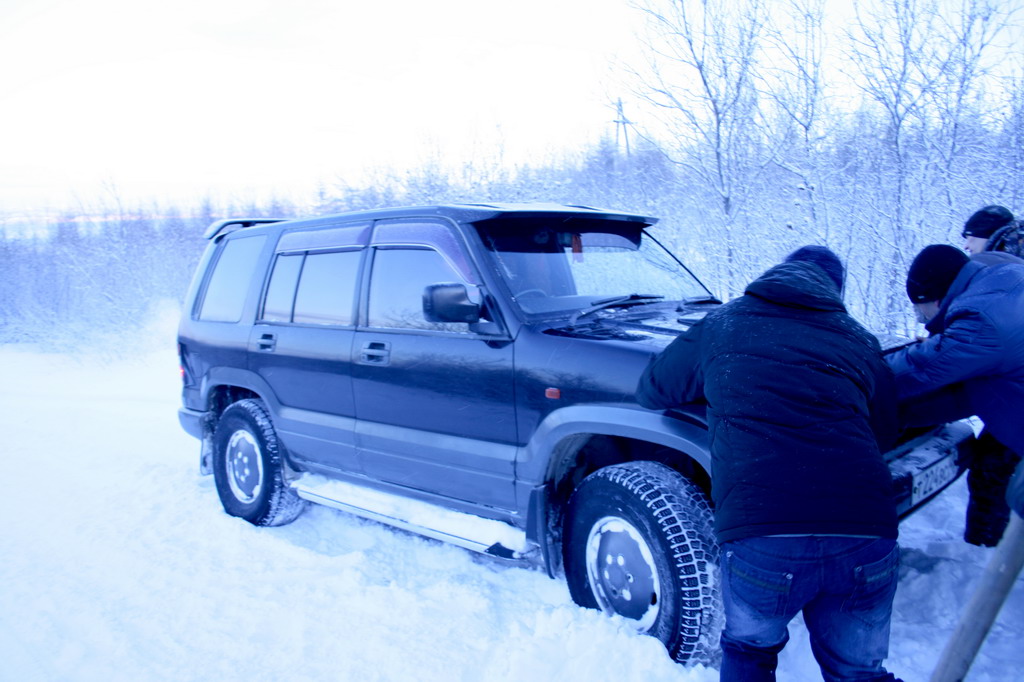 он был впереди и немного нам мешал когда застрял пока вытащили уже смеркалось