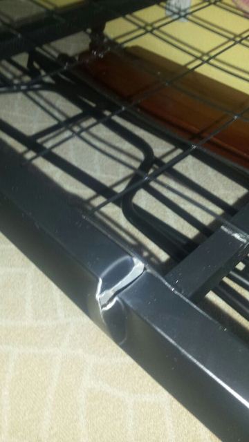 Дело в том, что приобрели 09.02.2015г. в магазине "Мебель на Парковой" детскую кровать 2-ур. (сделана из металла), но ее можно установить по отдельности, как две отдельные кровати. Одна кровать получается односпальная, вторая как 1,5-спальный диванчик. Собрали сами только односпальную кровать. Она состоит из 4 деревянных ножек, задней спинки, передней спинки (типа бордюр, что бы ребенок не упал с верхней кровати) и основная часть (четыре металлические палки(не знаю как их правильно назвать) и металлическая сетка) , на которую ложиться матрас . При сборке обратили внимание, что одна металлическая палка, которая идет по длине, имеет посередине как бы загиб металла во внутрь. Вот на этом месте кровать и треснула, спустя месяц. На фотографиях видно откуда начался излом. Не с самого верха, а с середины.