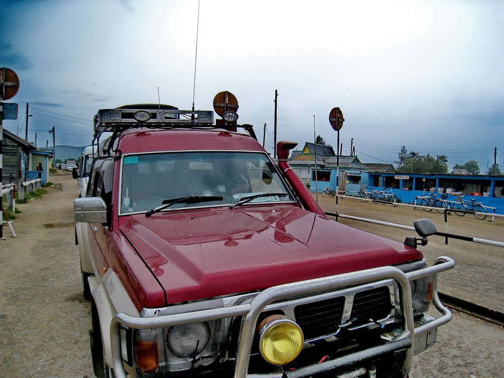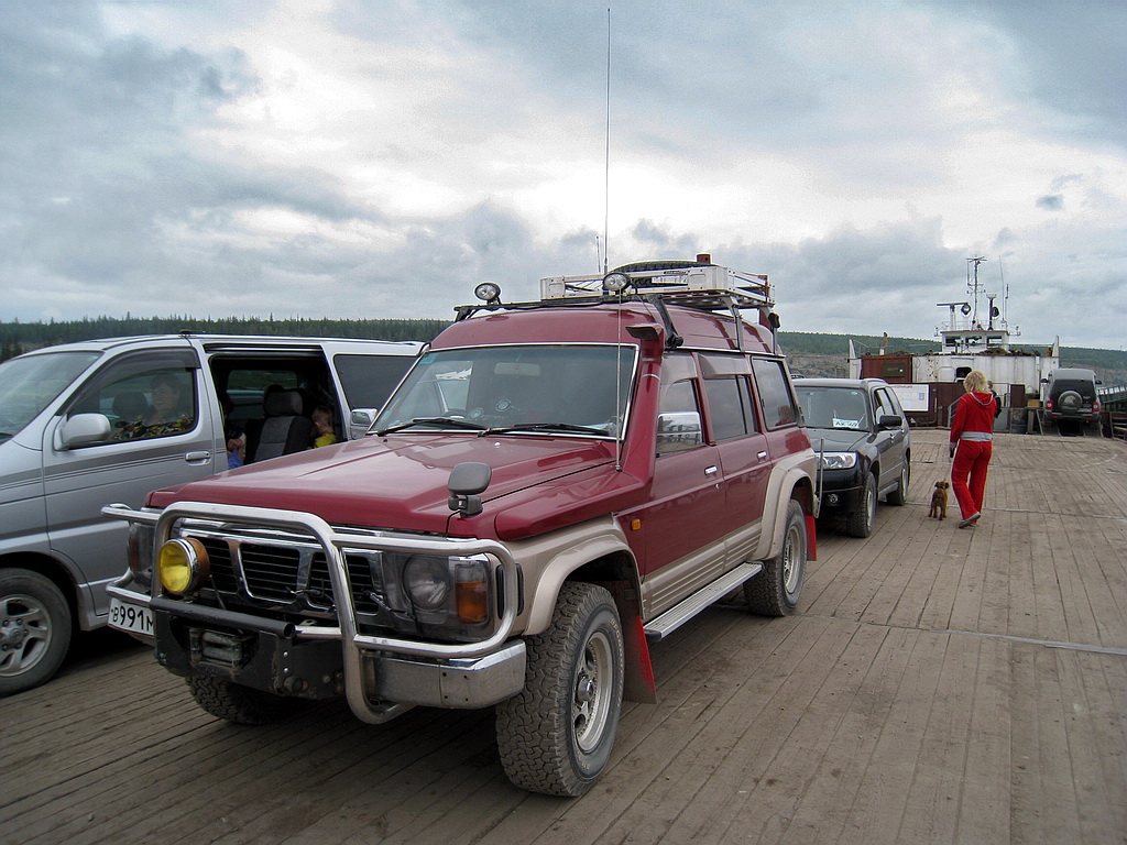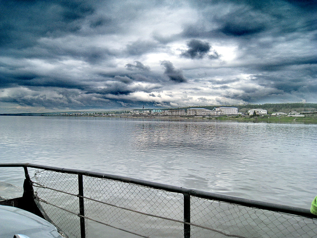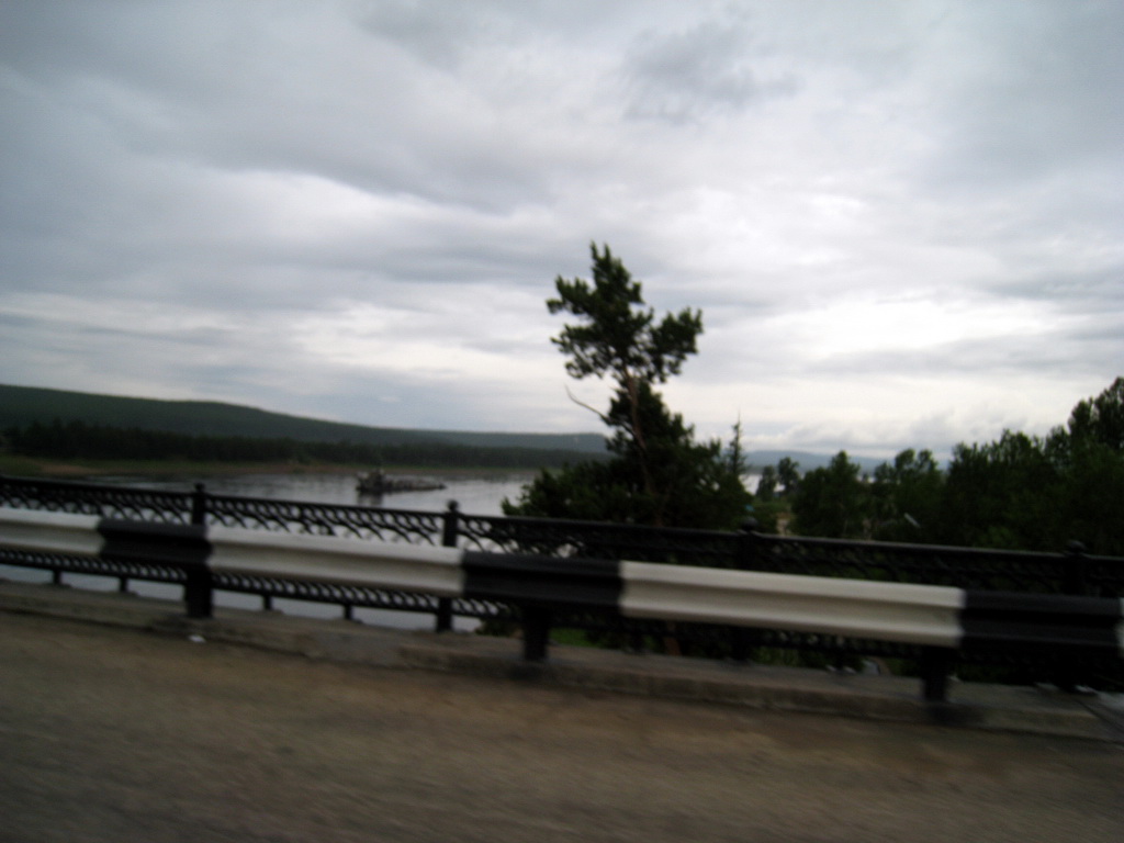 А перед самым въездом в город – я увидел оленя. Но как он прыгал в лес – это надо было видеть. Въехали в город (или поселок – честно говоря – деревня деревней).. Заблудились в поисках переправы – потом пораспрошали – нашли переправу.. Подъехали – и решили пообедать сначала – а потом уже переправляться. Возле переправы – находиться позная. Зашли – накушались поз. Поставили машину в очередь на переправу и начали ждать.