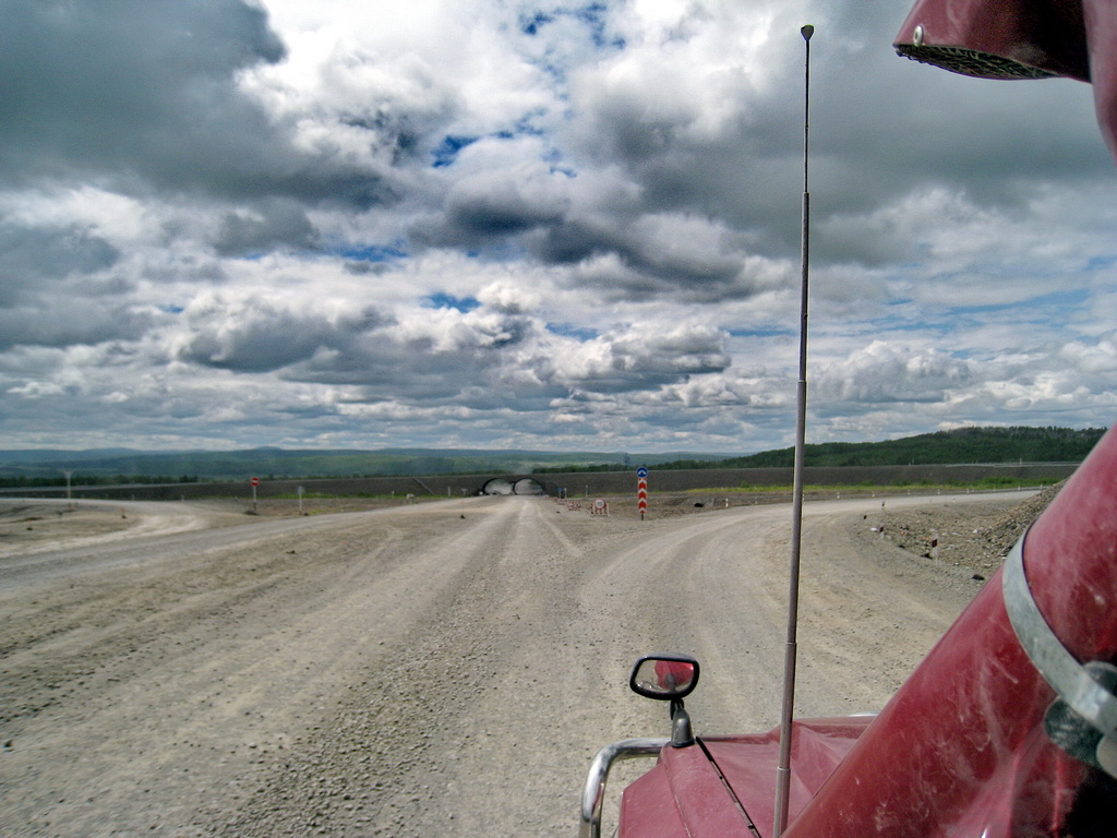 В Гремяченске – я закупил пива (ящик – на неделю на базе, что бы потом не мучатся, вдруг у них нет).. Выезжаем из города – и вот он – Байкал. Было пасмурно – поэтому решли не останавливаться - видов особо красивых не было. Машин по берегу тоже столяо не очень много. Поехали дальше.. Постепенно асфальт пропал – и пошла грунтовка – но строящаяся.. Строят китайцы – не могу скзаать что качественно – но будем надеяться что дорога – рано или поздно станет хорошей.