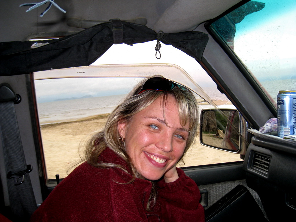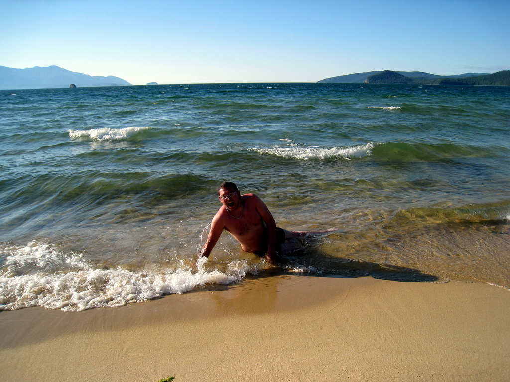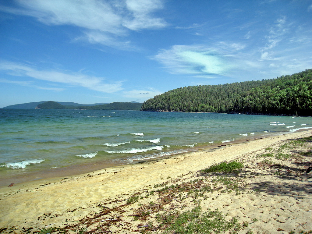 Баргузинский залив – пасмурно –и было не очень красиво..Кстати, ощутили, что возле воды довольно прохладно.