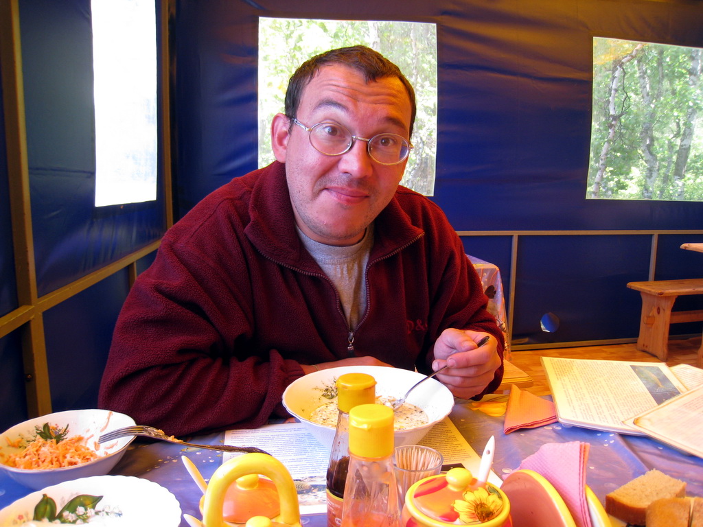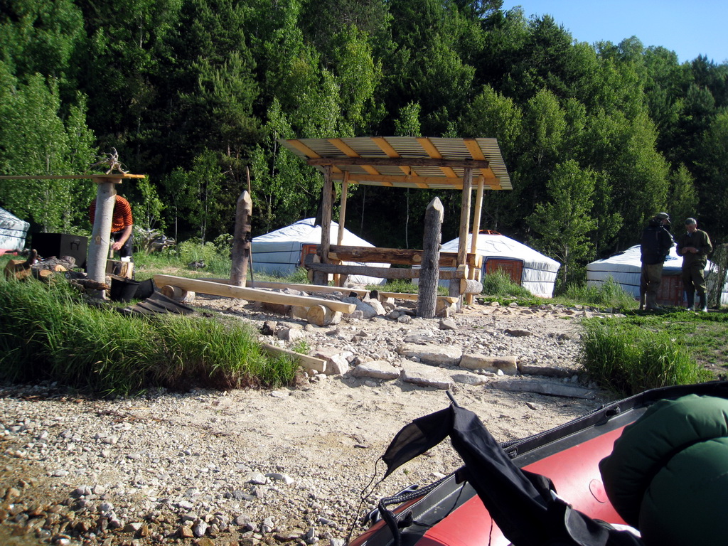Встали на берегу, и по случаю прибытия в конечную точку путешествия (дальше – только на моторной лодке) распечатали ящик пива. Стукнулись жестянками – с приездом %)