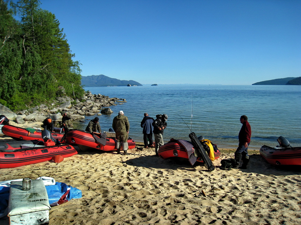 А на берегу – сотрудниками парка оборудован кемпинг. Врыты скамейки, сделаны кострища, можно рыбу коптить. И большой ряд машин вдоль берега.. Машины все в основном с прицепами, стоят палатки, навесы.. на берегу очень много моторных лодок.. На Чивыркуе вообще без лодки делать нечего – рыба с берега почти не ловиться.