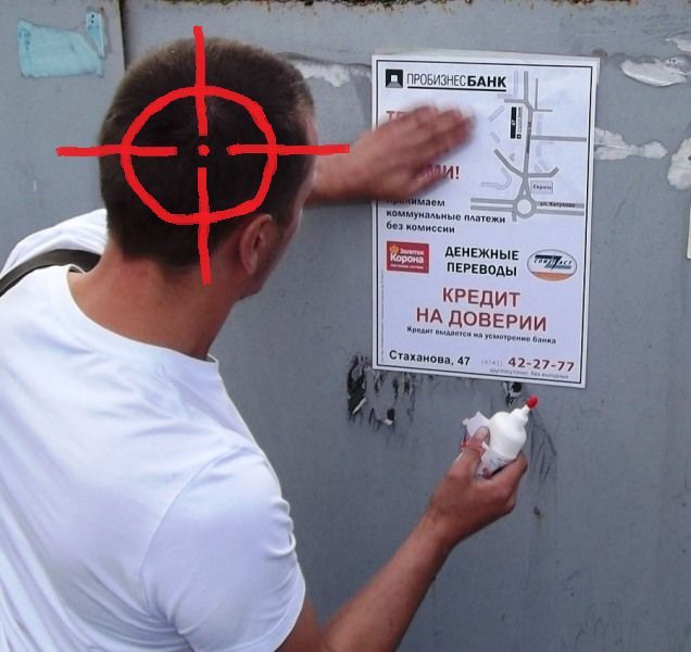 Хотите верьте, хотите нет. НО! Гидр правильно обозначил ситуацию. Газету берут не все, интернет так и подавно. Самая эффективная в нашем городе реклама, это расклейка(что касаемо бытовых услуг). Сам клеил, но признаюсь не от балды это делал, на новые двери не клеил, на свеже покрашеные стены тоже, делал это так, чтобы и не во вред жильцам, но и не в ущерб себе.