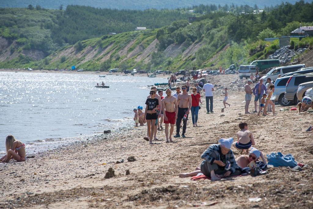 ""Многим магаданцам в связи с хорошей погодой сократили рабочий день и даже освободили от труда. На трех пляжах города практически не было свободного место не смотря на будний день. Впервые с начала лета температура воздуха в Магадане превысила отметку в +20 градусов. Редакция ИА MagadanMedia вооружившись фотоаппаратами отправилась посмотреть как отдыхают горожане.""
