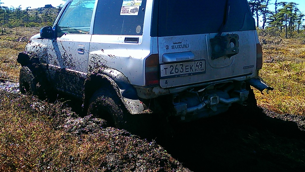 Ну вы конечно сравнили ж... с пальцем. Я бы на бывшем эскудике, с не очень большими колесами, тоже по кочкам проскакал. А на этом гробе 2.5 тонны в стандарте. Лучше уж пешком. Так и норовит в колею залезть, да поглубже. Туда доехали без особых проблем. А вот от туда......