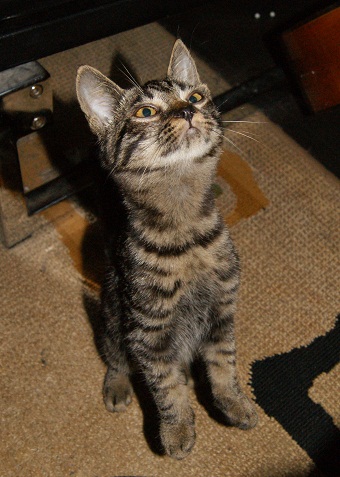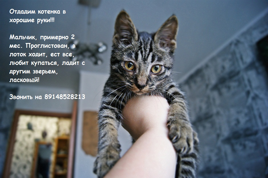 Мальчик, усатый полосатый, примерно 2 месяца отроду! Мечтает найти добрых хозяев (как впрочем и мы!)