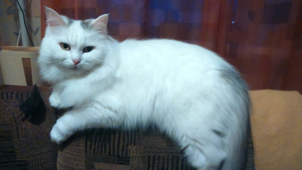 Вчера в районе Военкомата, новая 27А потеряли кошку, белая, очень пушистая, около ушей серые пятна, хвост тоже серый.