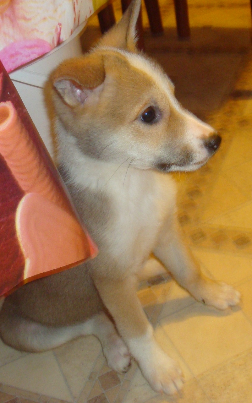 Рыжий щен с белым воротничком, месяца два-три. Нашелся возле магазина "Кораблик"