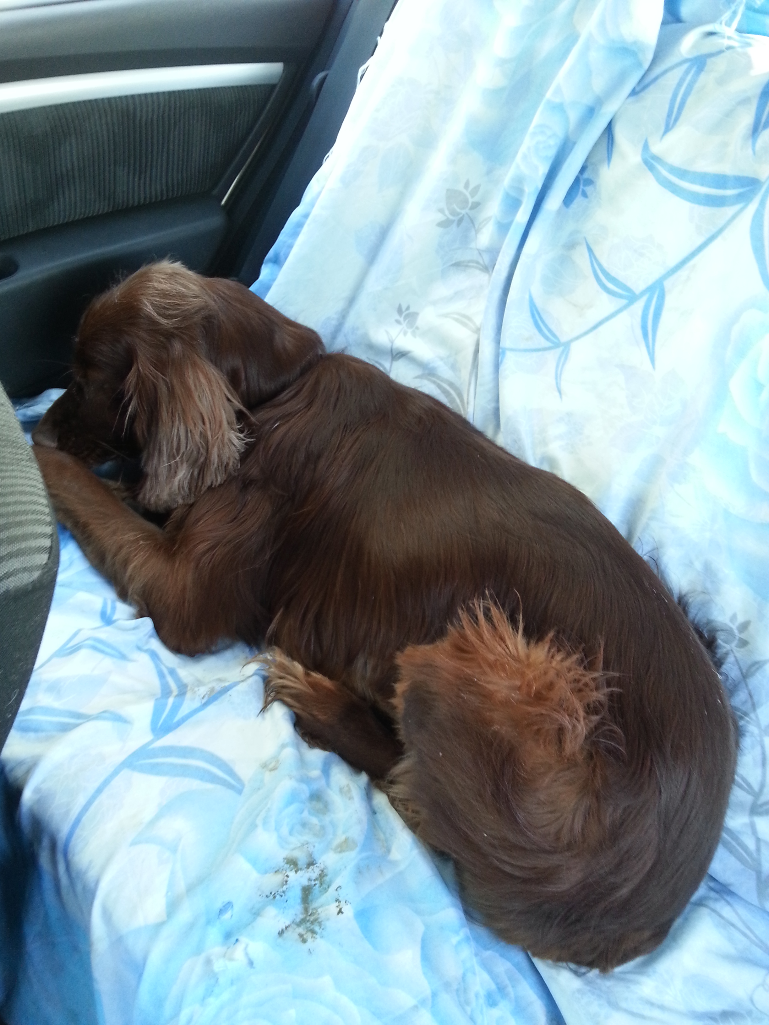 я бы с удовольствием, но пузо заросшее, не видно, а спокойно лежать на спине собака не хочет, вырывается..