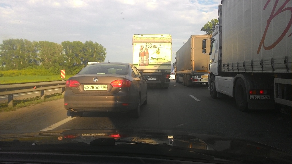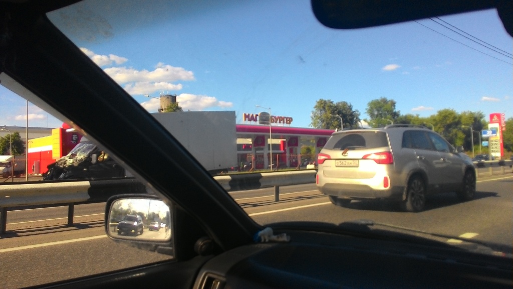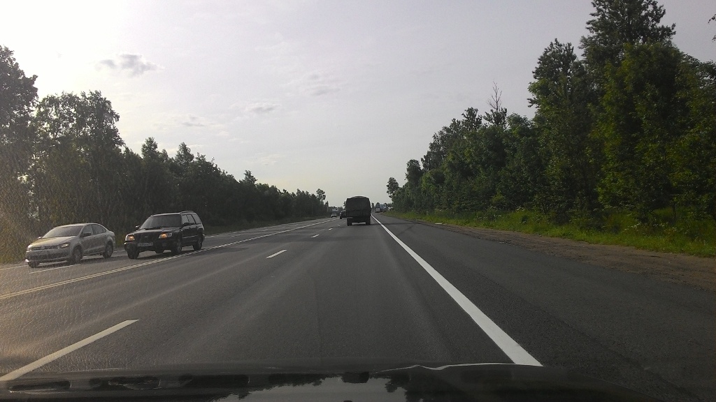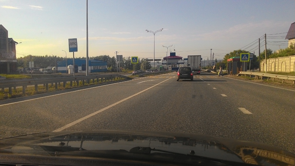Нажмите для просмотра прикрепленного файлаЗаправкаНажмите для просмотра прикрепленного файлаНажмите для просмотра прикрепленного файлаНажмите для просмотра прикрепленного файлаК сожалению, все хорошее быстро заканчивается. Дальше переезд через уральские горы. Тут все мои положительные эмоции обнулились. Участок очень сложный. Дорога почти всегда двухполосная, частые повороты, очень плотный трафик, то подъемы, то спуски. Плюс ко всему еще и дождь пошел. В таких условиях фуры сильно тормозят движение, иногда до полной остановки, и вместе с туристическими автобусами сбиваются в длинные колонны, которые очень тяжело обгонять. У моего автомобиля динамика совсем чуть-чуть лучше динамики разгона груженой фуры, потому мне приходилось особенно тяжко. А еще на этом участке пути я пару раз пожалел, что у меня праворульный авто. Потому действовал следующим образом: ждал пока у водителя позади меня кончится терпение и он начнет обгон, я тут же выскакиваю следом за ним и мониторю. Если все удачно и встречка свободна, продолжаю обгон. В один из таких моментов возникла неприятная для меня ситуация.