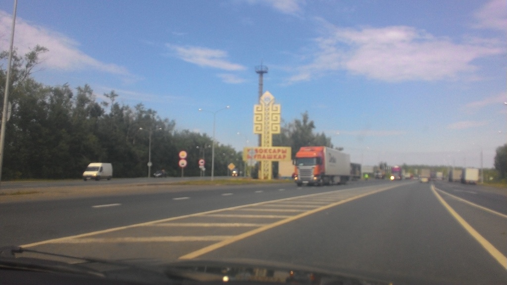 Нажмите для просмотра прикрепленного файлаВ этот день я опять пересек границы четырех областей: был в Челябинской области, республике Башкортостан, республике Татарстан и, наконец, оказался в Самарской области. Дороги в Самарской области оставляют желать лучшего. В сочетании с очень плотным траффиком, последние три часа пути из Татарстана до Самары стали для меня настоящим адом, впечатление осталось почти такое же как и от утреннего «лишения прав». Дорога двухполосная, асфальт плывет, ямы. Обгоны грузовиков даются очень тяжело, настолько, что ехал до Самары не останавливаясь, лишь бы заново не обгонять.