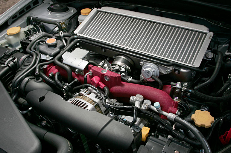 Двигатель автомобиля WRX STI развивает мощность в 300 с лишним лошадиных сил. Не то, чтобы он выигрывал у LanEvo по скорости набора оборотов, но что касается развиваемой мощности — это да, какие бы обороты он ни держал, его мощность всегда на уровне. Мгновенно увеличить обороты и развиваемую мощность — это, конечно, хорошо, в этой способности LanEvo трудно отказать, однако и за рулем Subaru, если включить режим «спорт — активно» [S#], тоже можно добиться от мотора вполне удовлетворительной скорости реакции. Скорость движения — тоже, сами понимаете, можно разогнаться так, что мало не покажется.